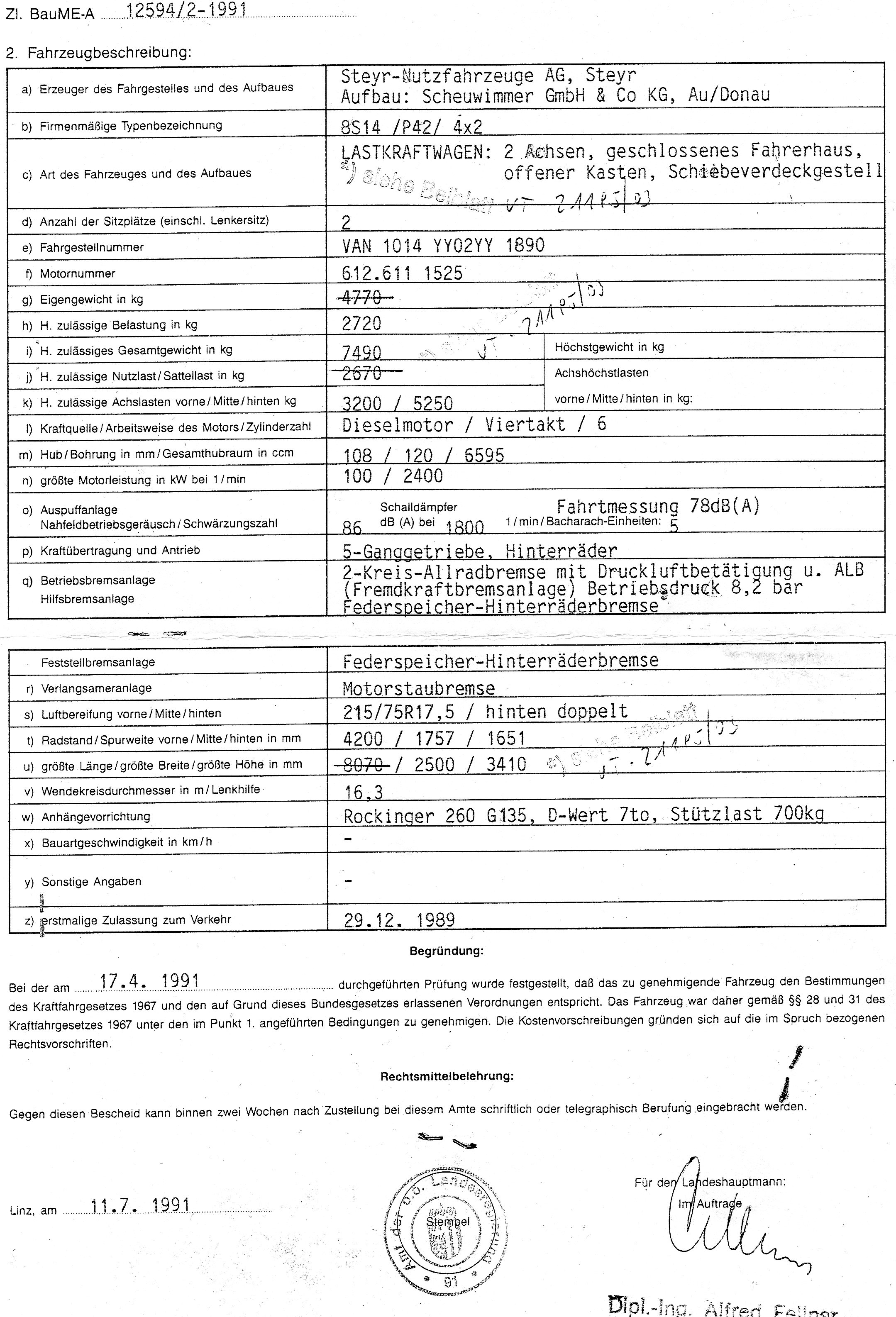 Ohne Aufbau Bremse reparaturbedürftig Bereifung vorne und hinten neu zusätzlich Ladebordwand